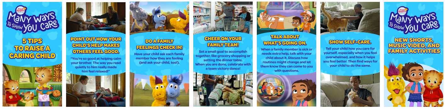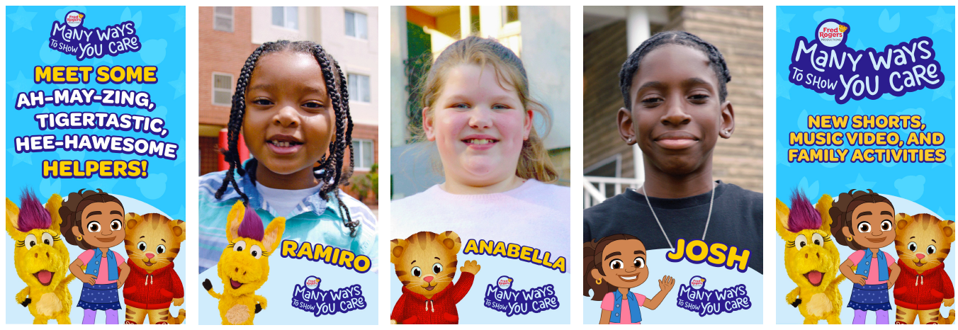 I got the opportunity to work with Fred Rogers Productions on the logo and social campaign for a new shorts series: Many Ways to Say You Care. The series highlighting the "Many Ways" you can care for your friends and family with show highlights from Daniel Tiger's Neighborhood, Alma's Way and Donkey Hodie.
